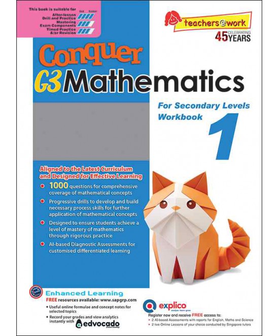 Conquer G3 Mathematics For Secondary Levels Workbook 1 is aligned to the latest MOE Secondary 1 syllabus and is carefully designed for students to pick up mathematical concepts in a systematic manner and develop mathematical proficiency.