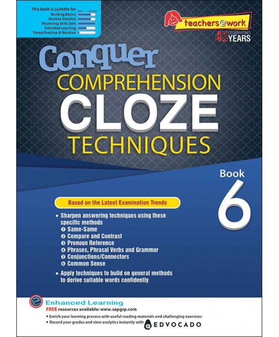 • SAP_Conquer COMPREHENSION CLOZE TECHNIQUES Book 6  แบบฝึกหัดการอ่านจับใจความและเติมคำในช่องว่างสำหรับชั้นประถมศึกษาปีที่ 6