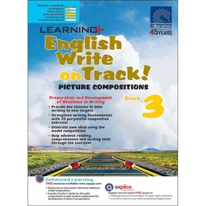 LEARNING+ English Write on Track! PICTURE COMPOSITIONS Book 3 is carefully crafted to provide the stimulus to take writing to new heights by laying the foundation and developing writing skills.