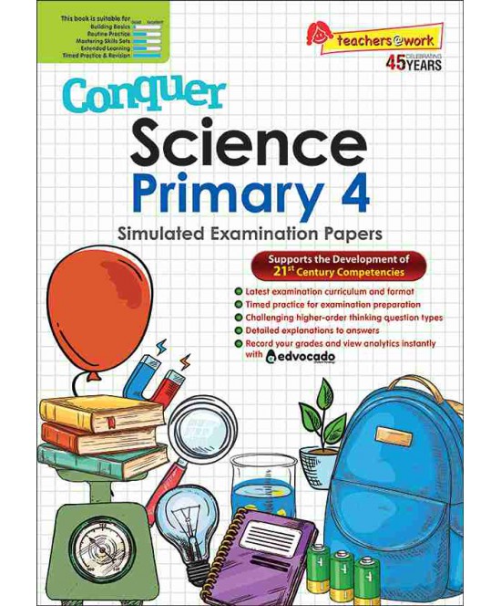 Conquer Science Primary 4 –Simulated Examination Papers aims to lessen the anxiety of sitting for important examinations by preparing students sufficiently to tackle standard and tricky questions.